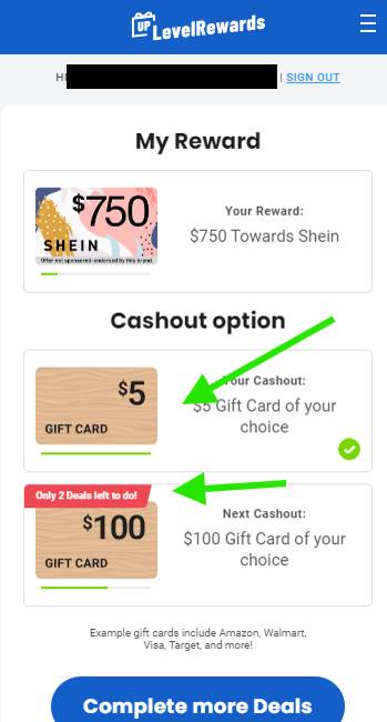 Step 7. When you have completed enough deals to earn at least $5, scroll to the bottom of the page and click the "REWARD STATUS" link.